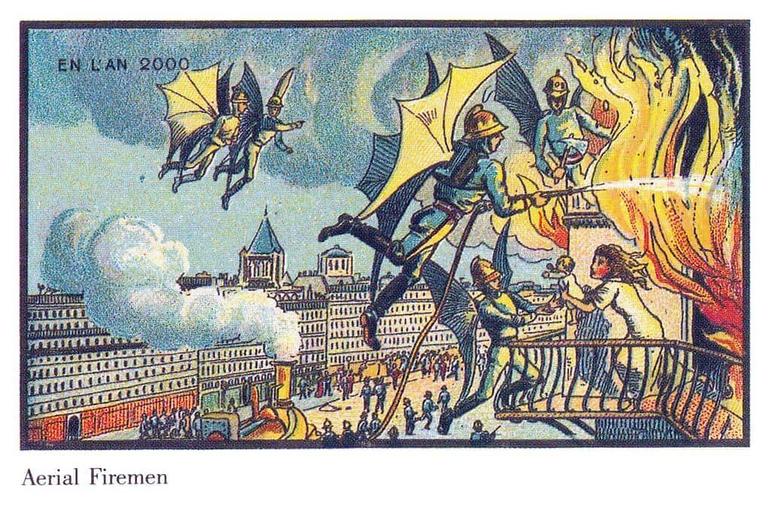 E os bombeiros usariam roupas com asas para combater os incêndios com mais facilidade.